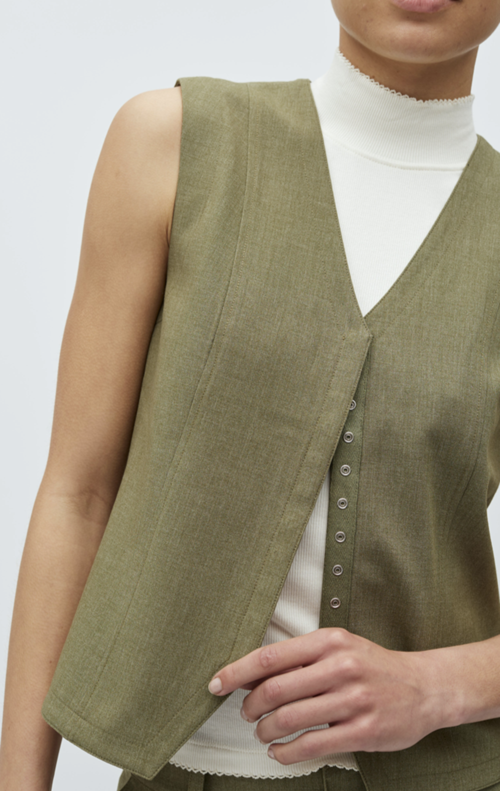 Waistcoat with covered closure and v-neck