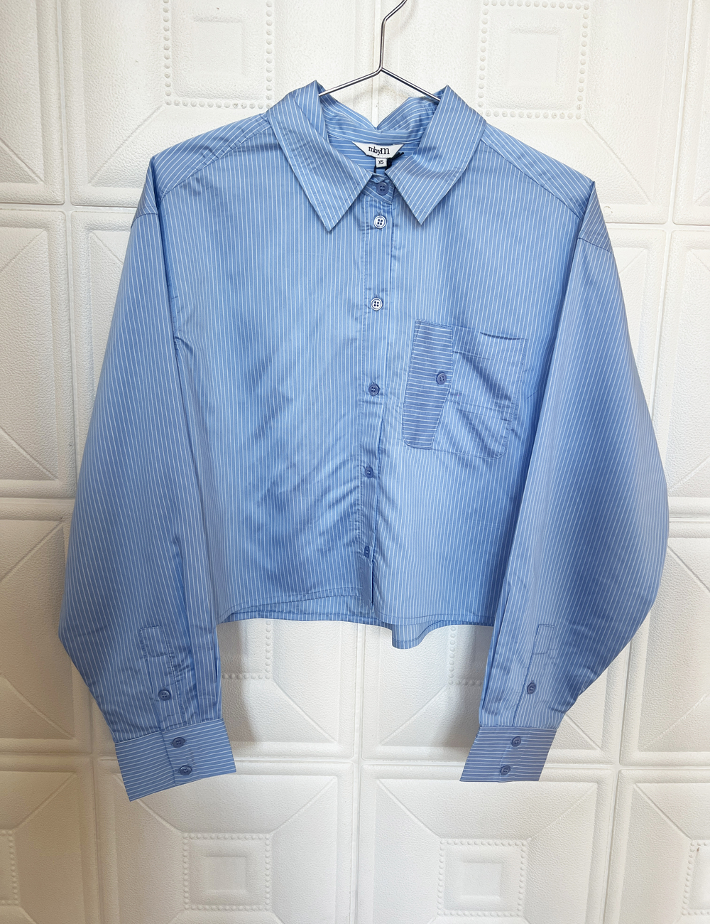 Cropped shirt with turned breast pocket detail.