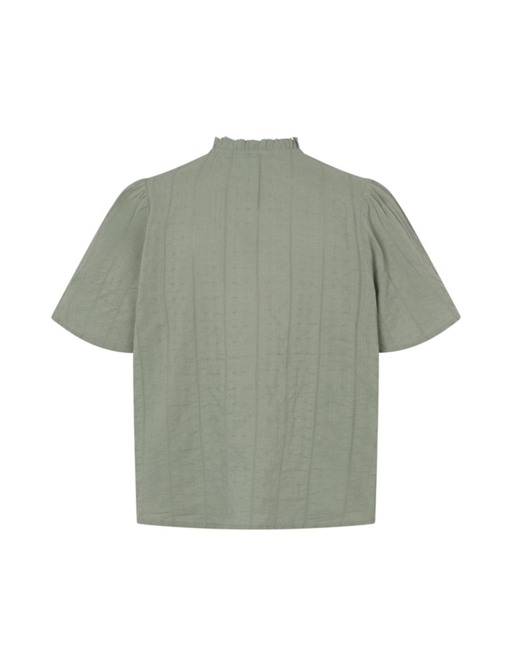 Short sleeve pleated blouse.