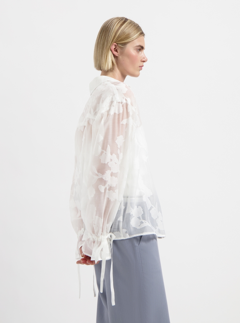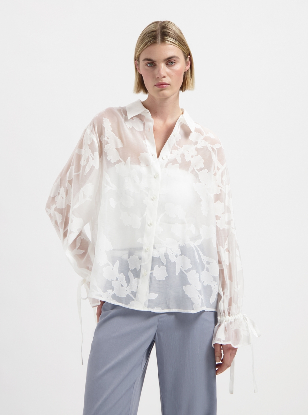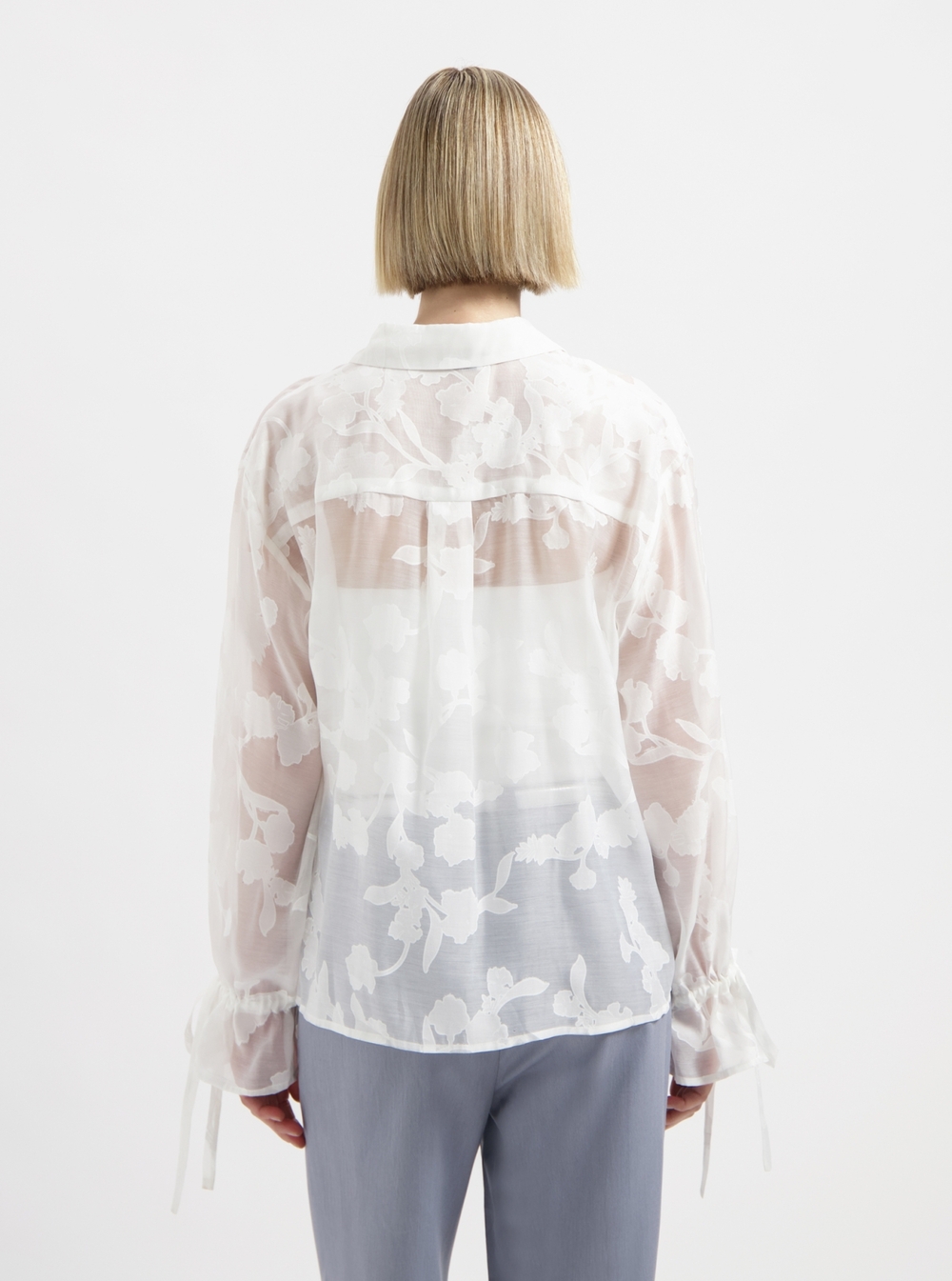 See through blouse with pattern.