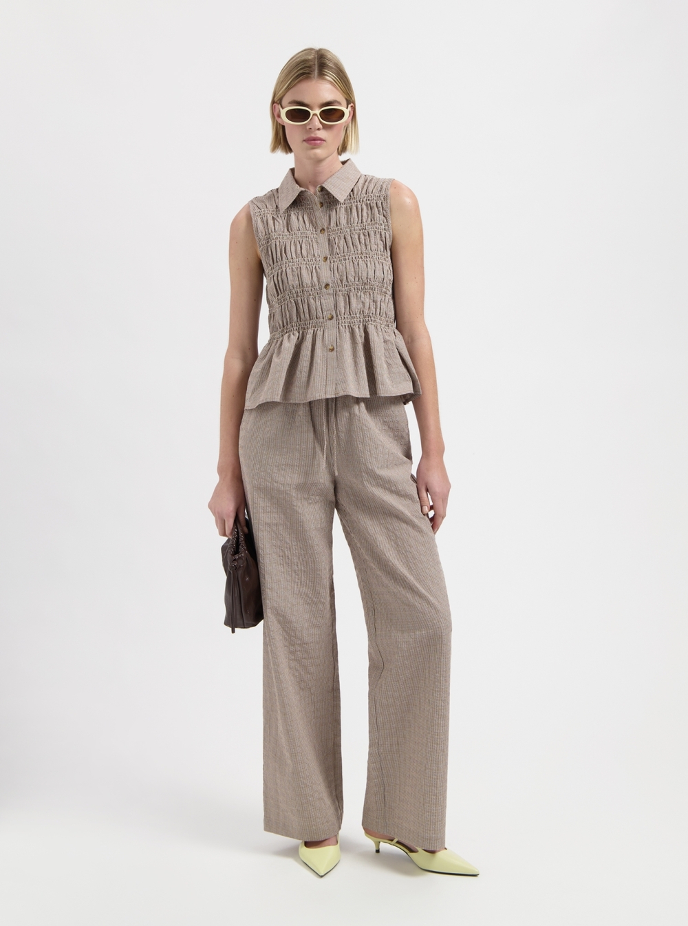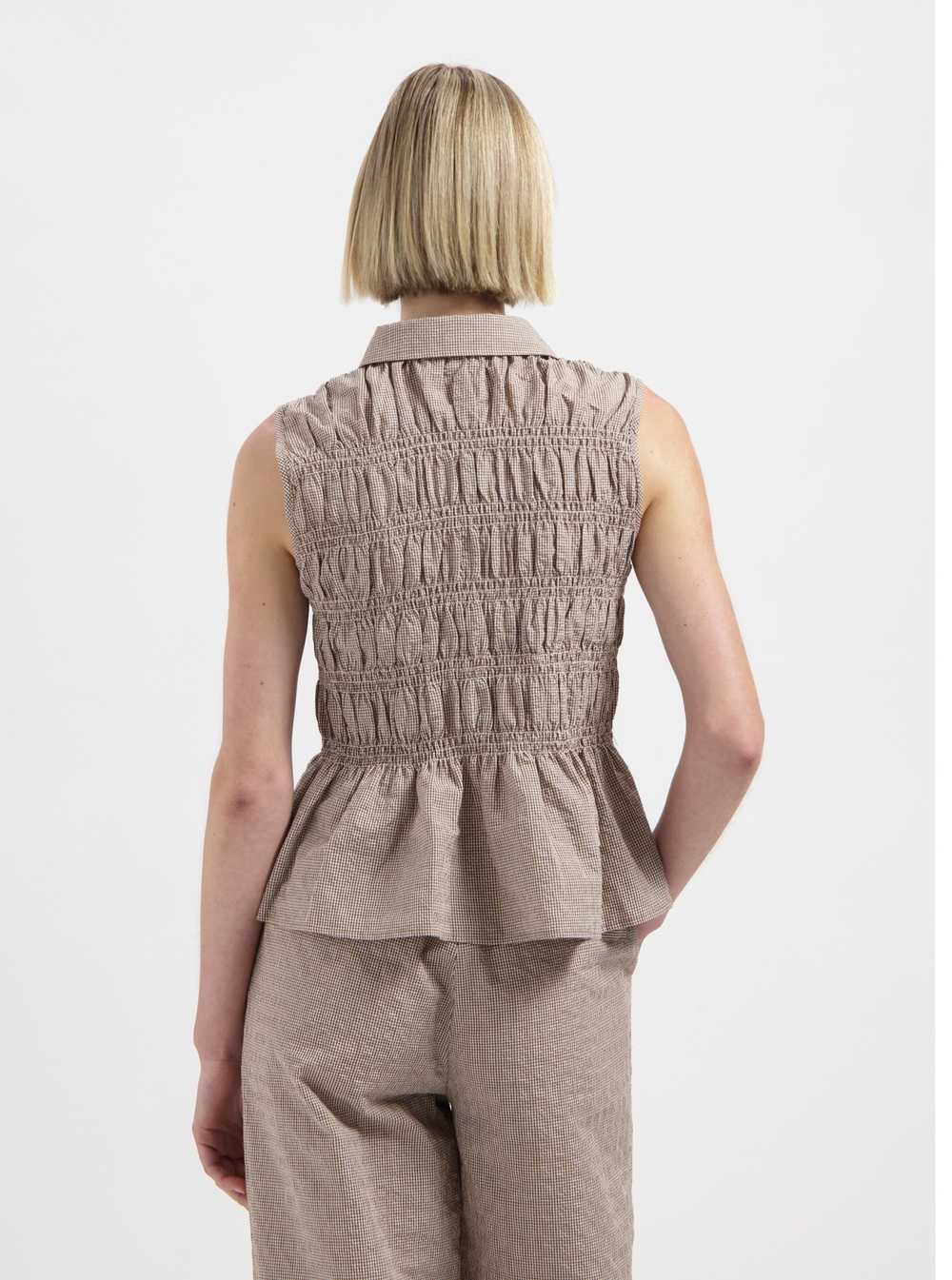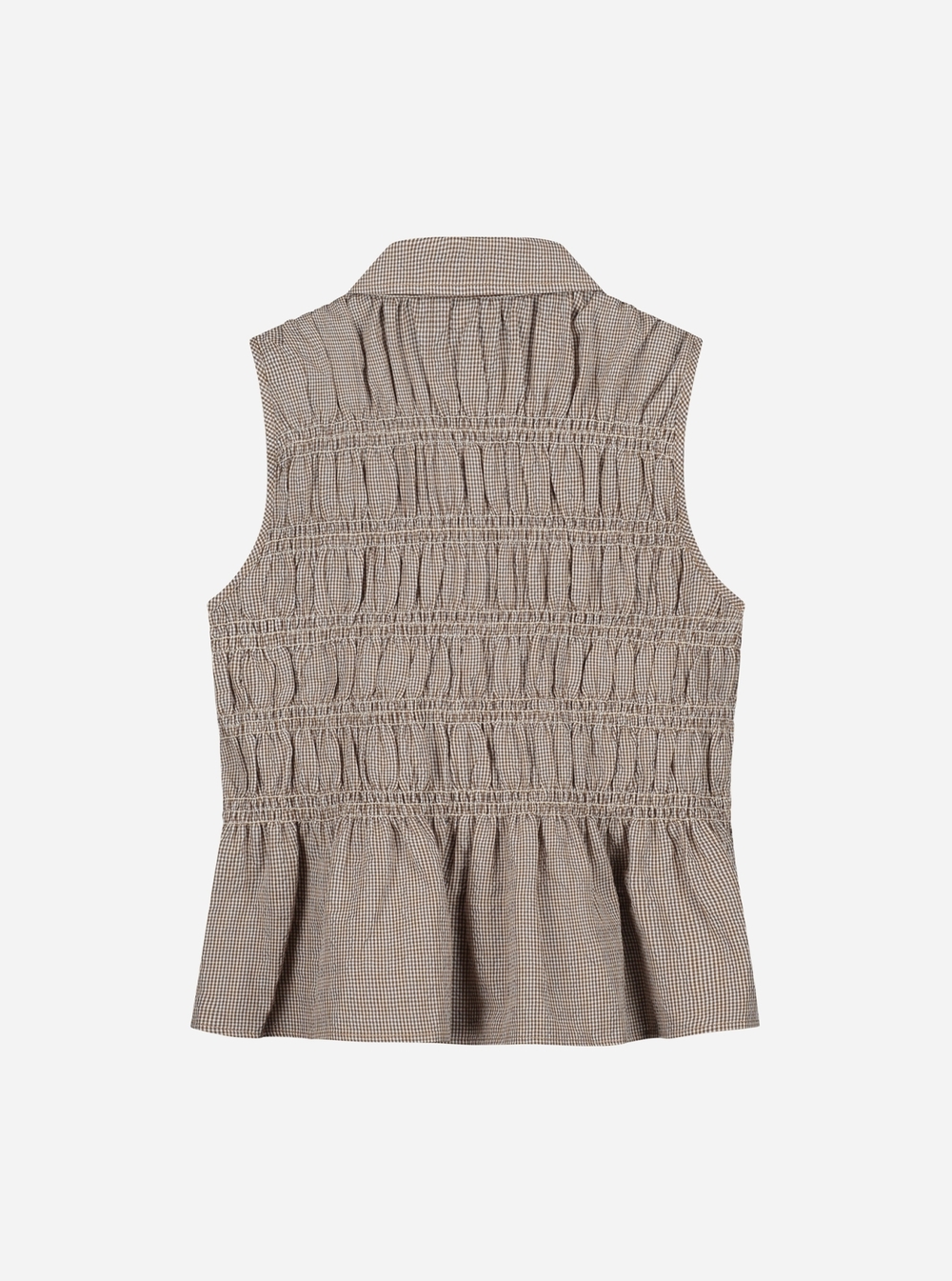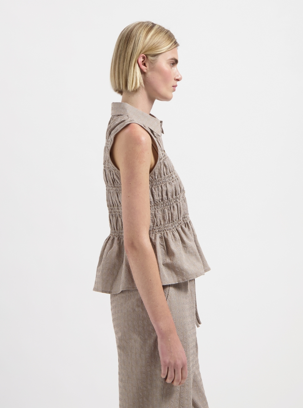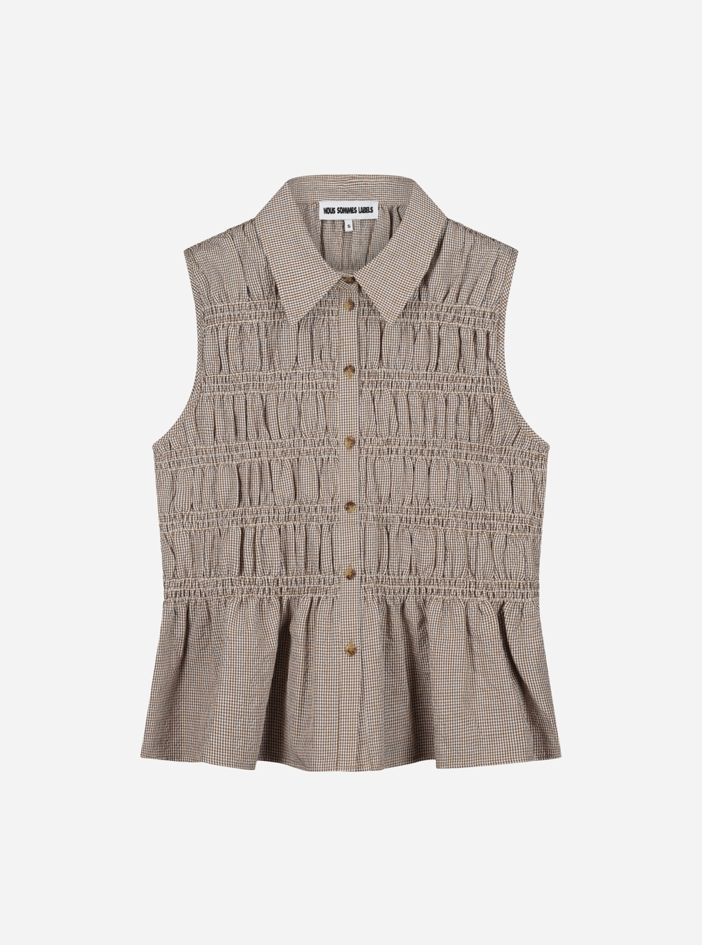 Smokked sleeveless blouse with collar. Wear with Inez pants to suit up!
