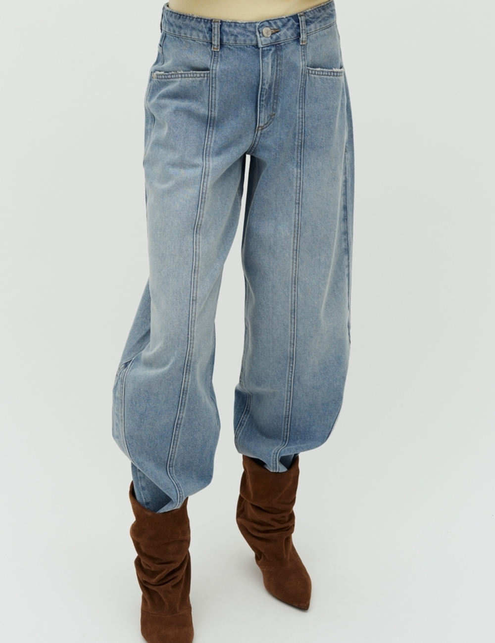 Barrel leg jeans with panels.