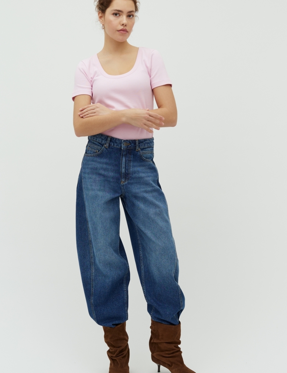 Barrel leg denim.