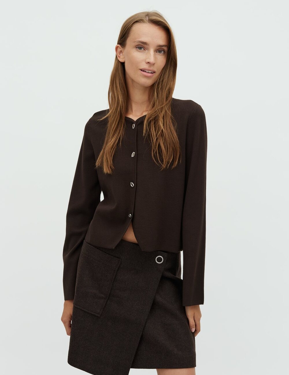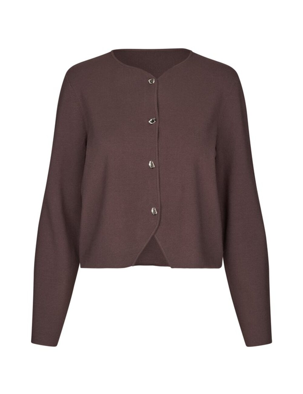 Knitted cardigan with silver buttons.