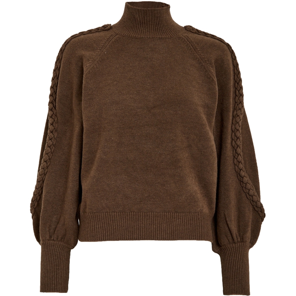 High neck pullover with braided sleeves.