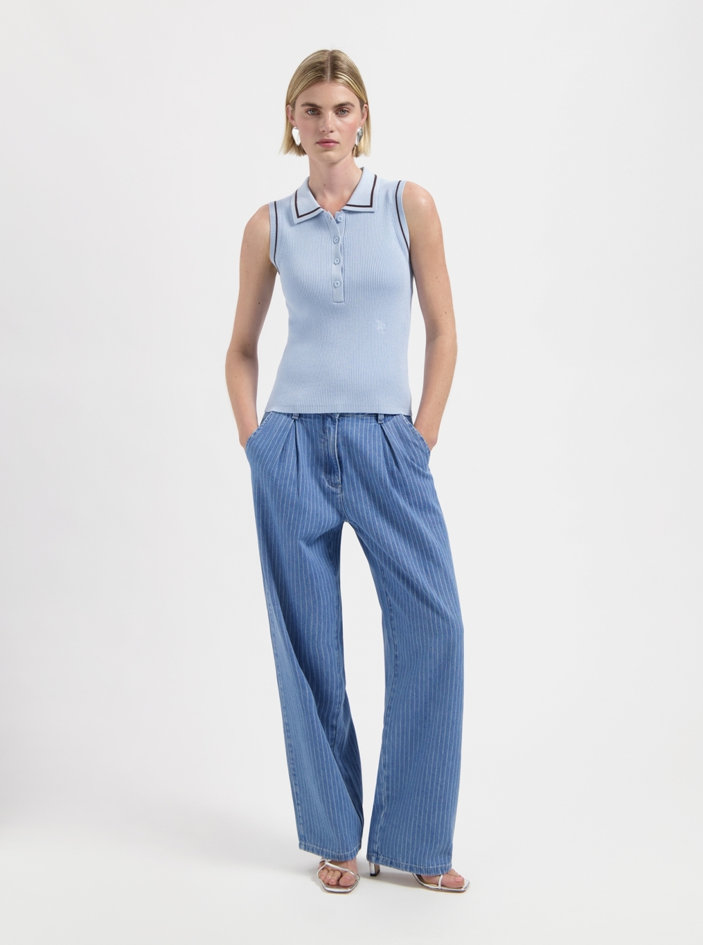 NSL Jill SL polo knit light blue