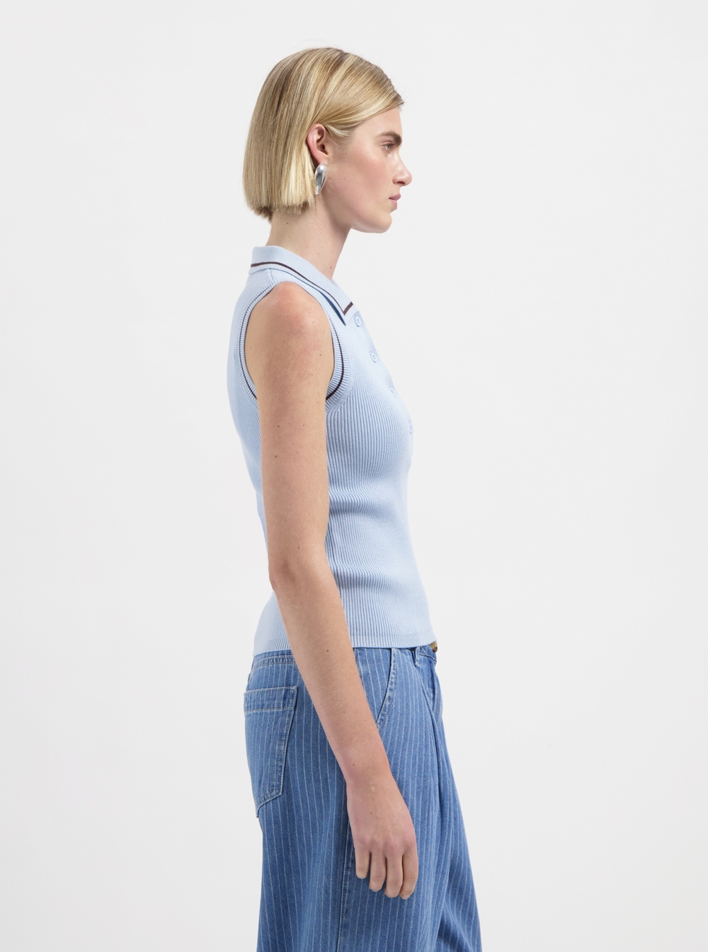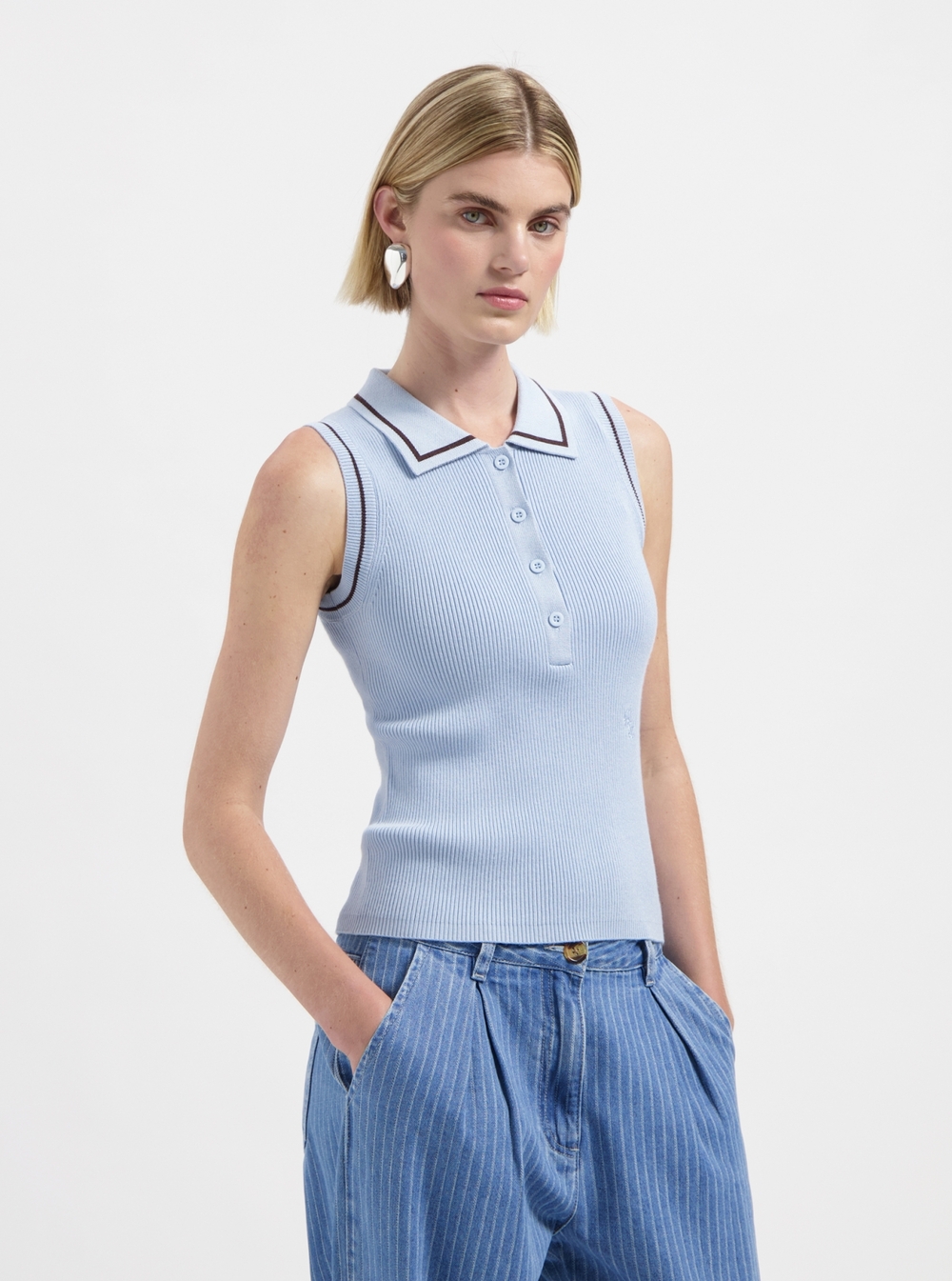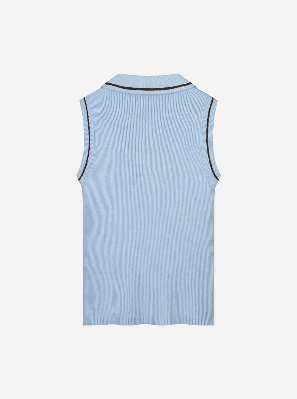 Sleeveless knit with collar.
