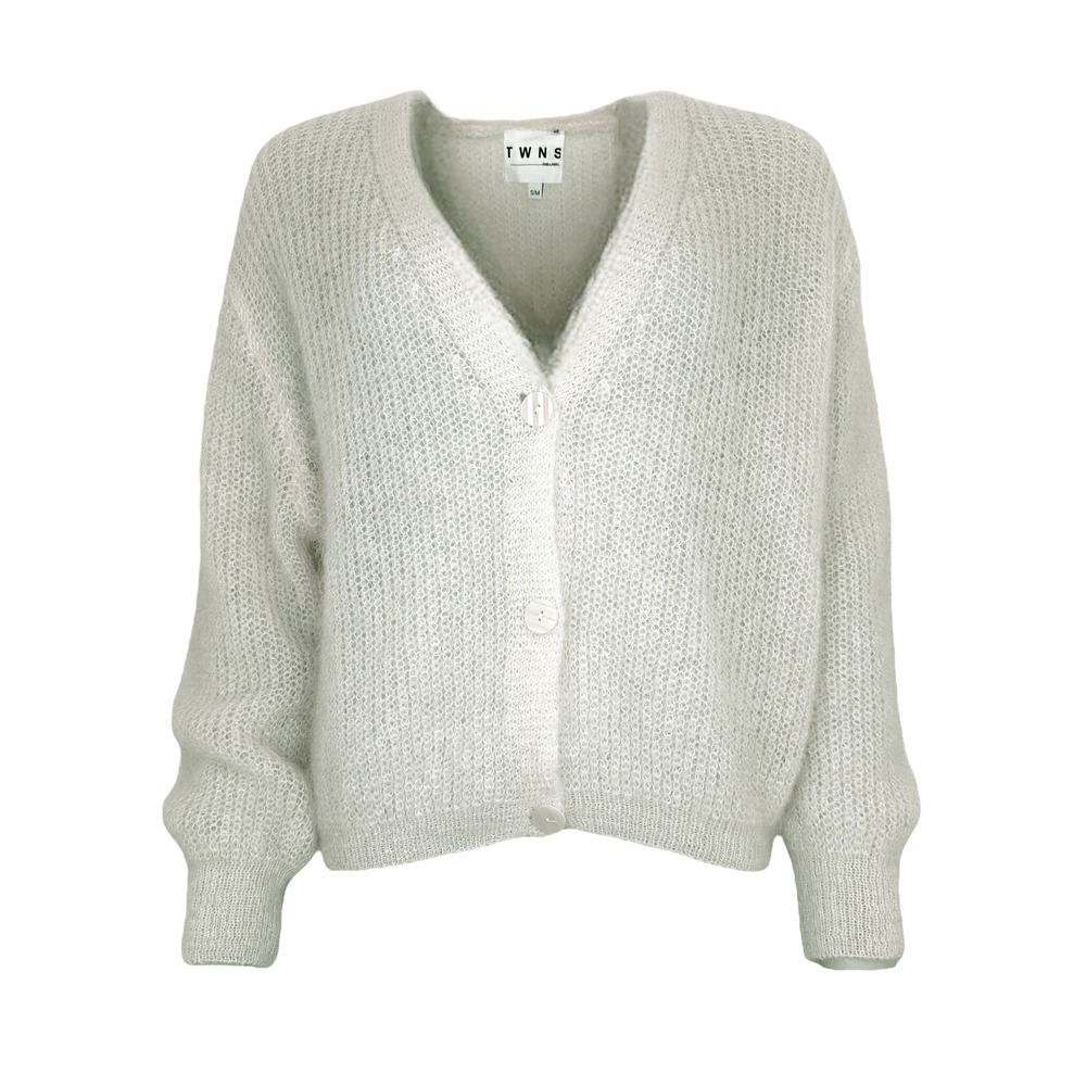 An oversized cardigan with feminine v-neck, pearl buttons and an ultra-soft fabrics to wear directly on your skin!