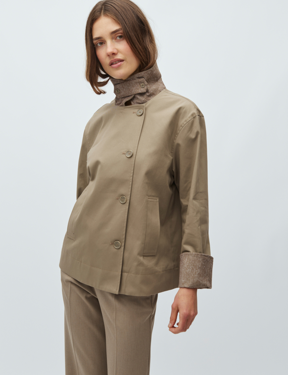 Jacket with detailed collar and sleeve turn up.