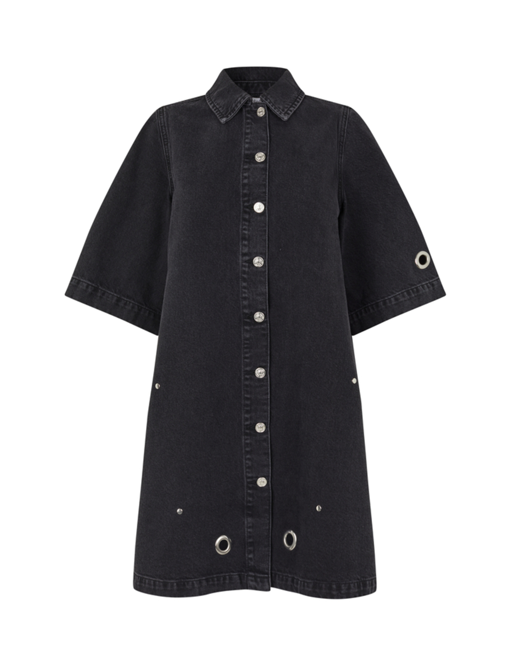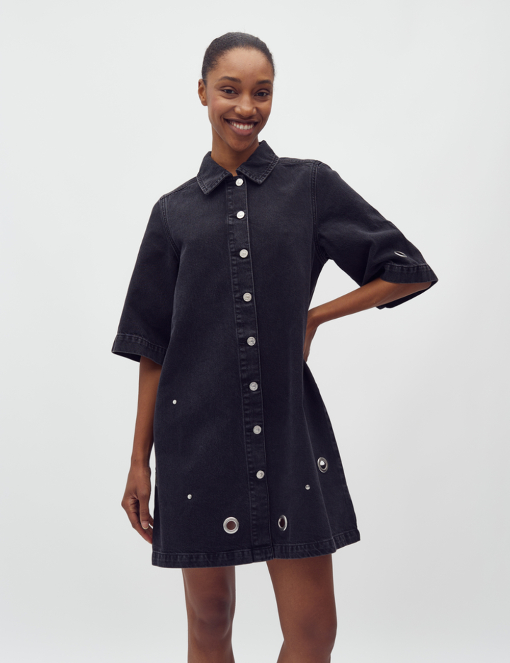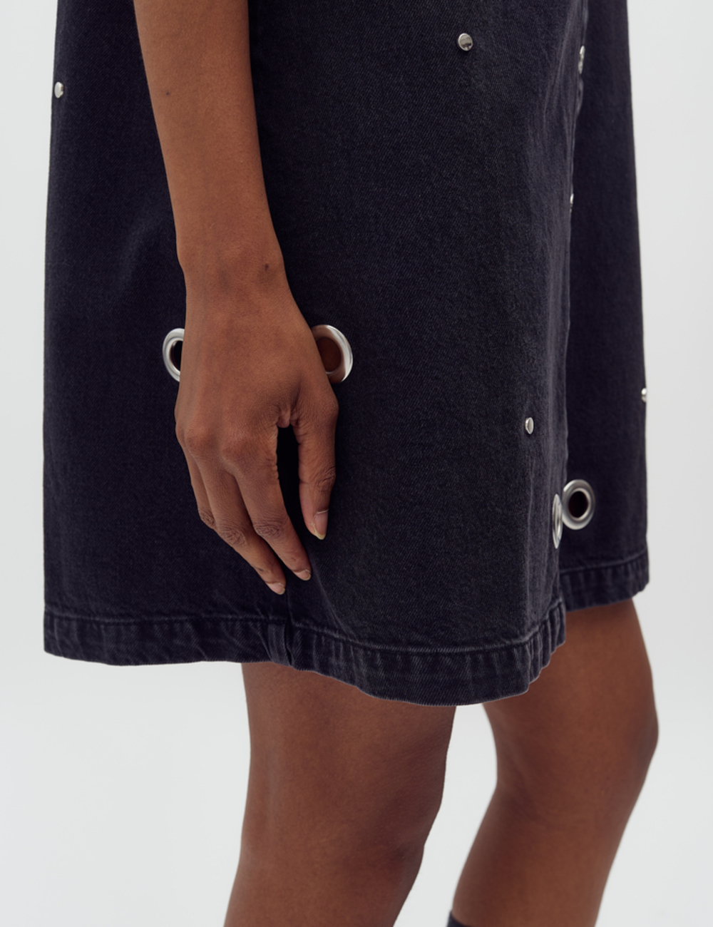 Denim dress with eyelet details.