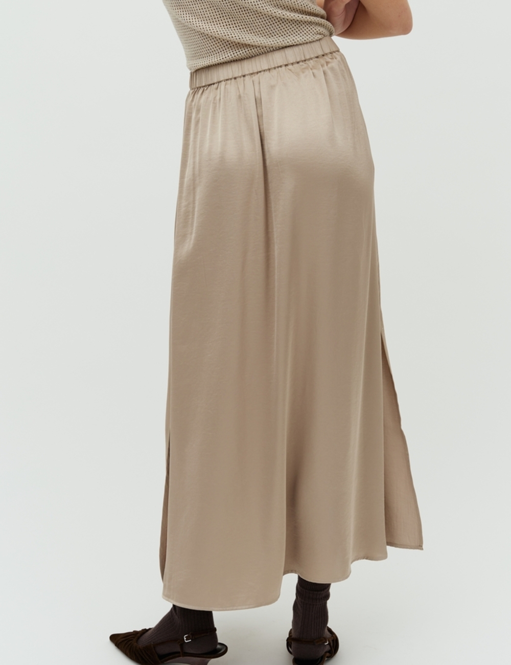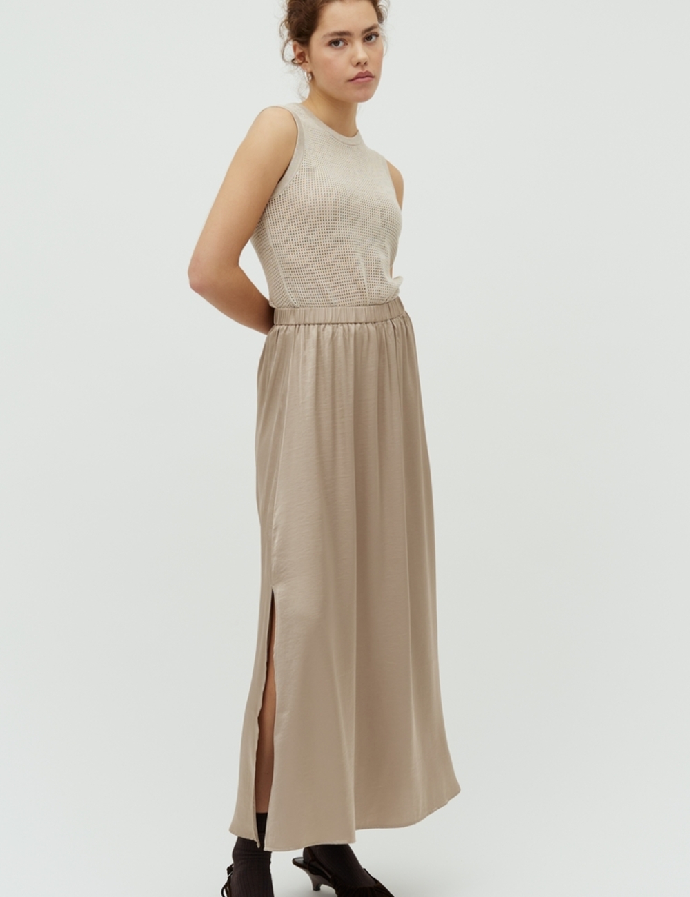 Skirt with elastic and slit at the side.