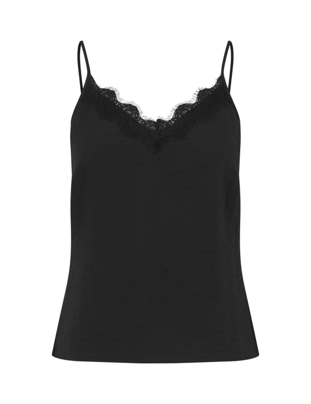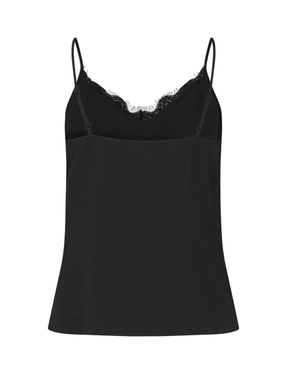 Sleeveless black top with lace.