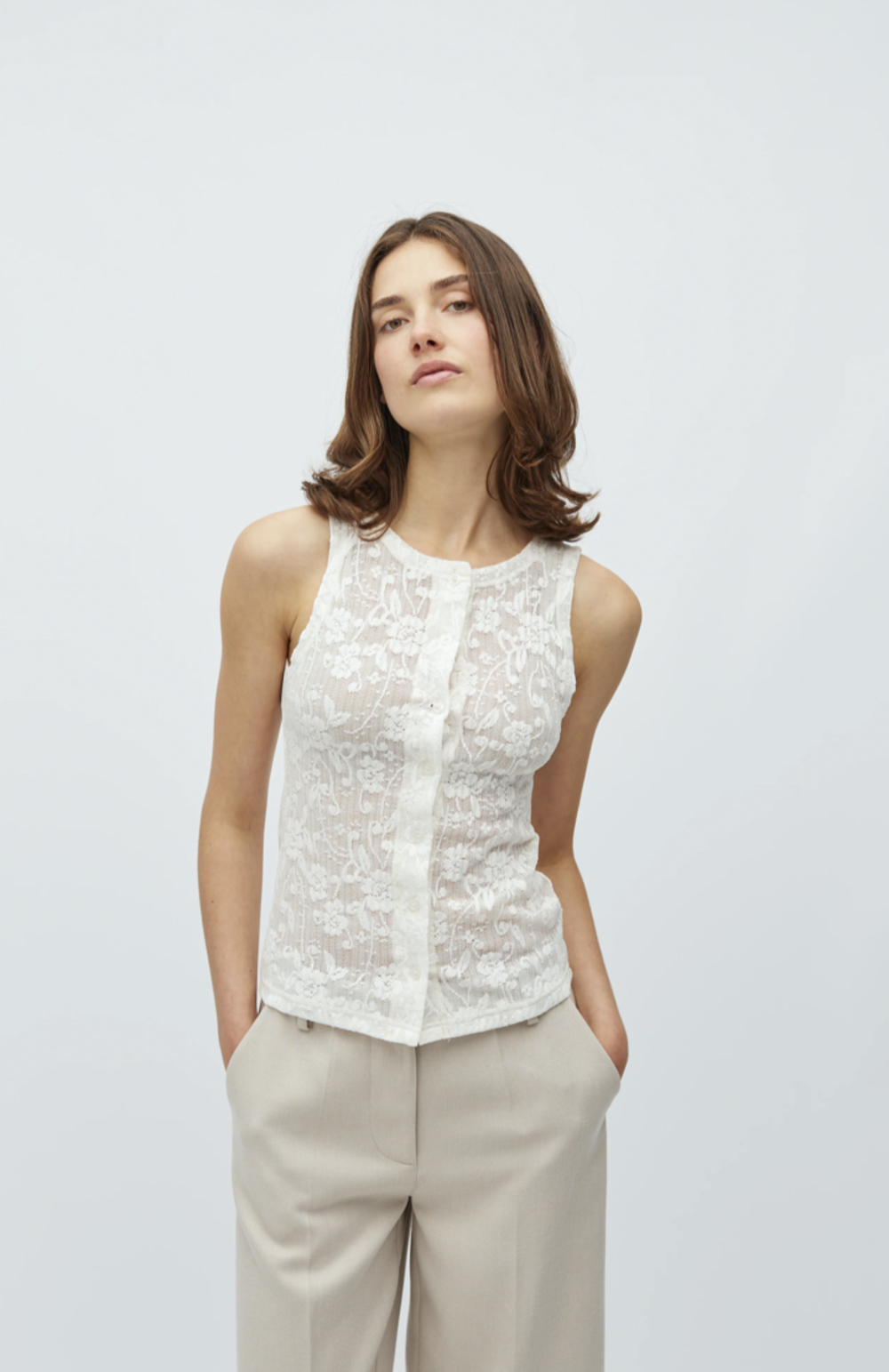 Transparent top in a floral pattern.