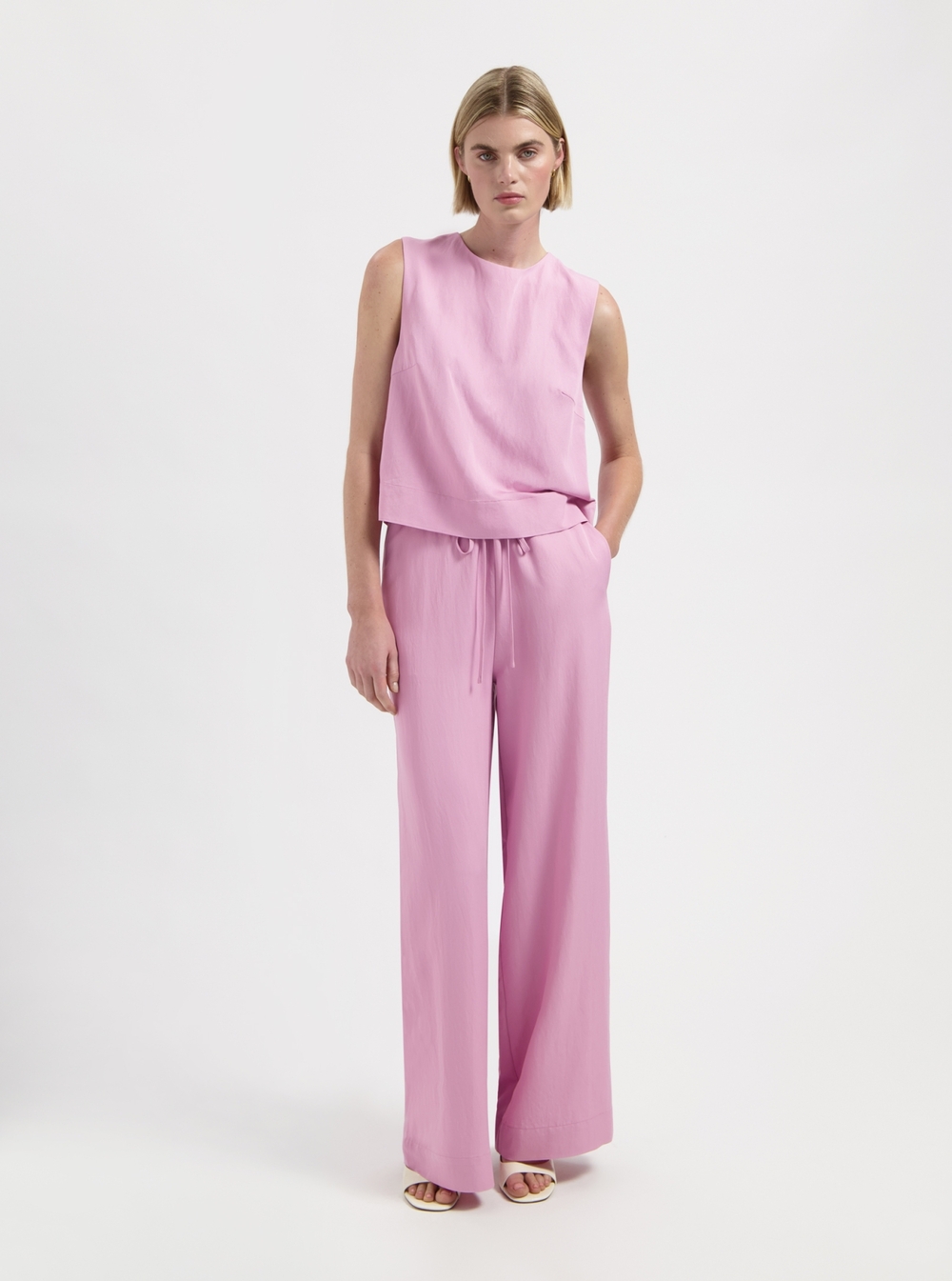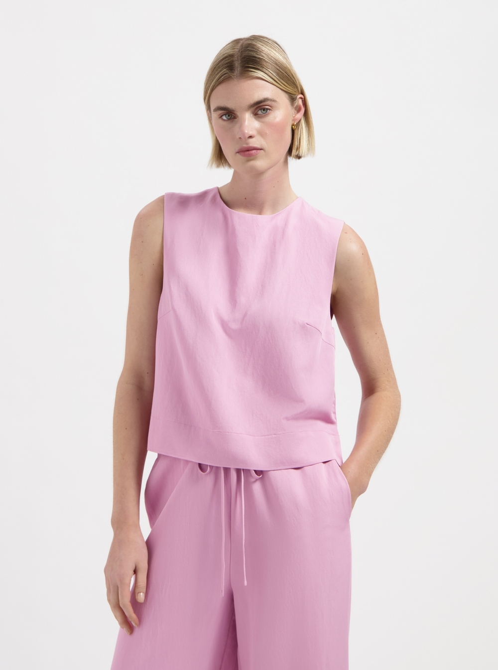 Sleeveless top, combine with Lauren pants to suit up.
