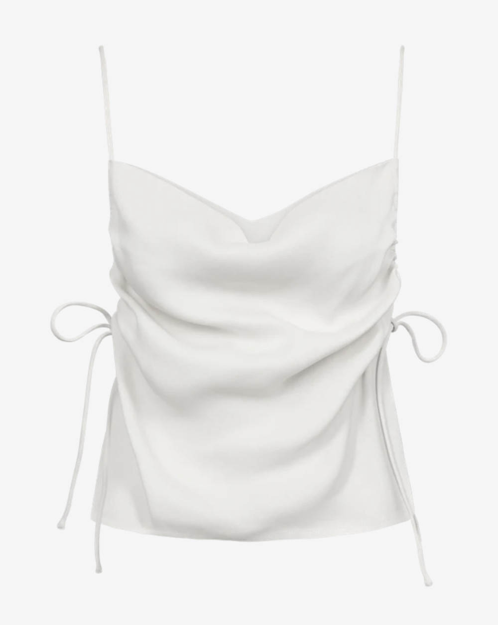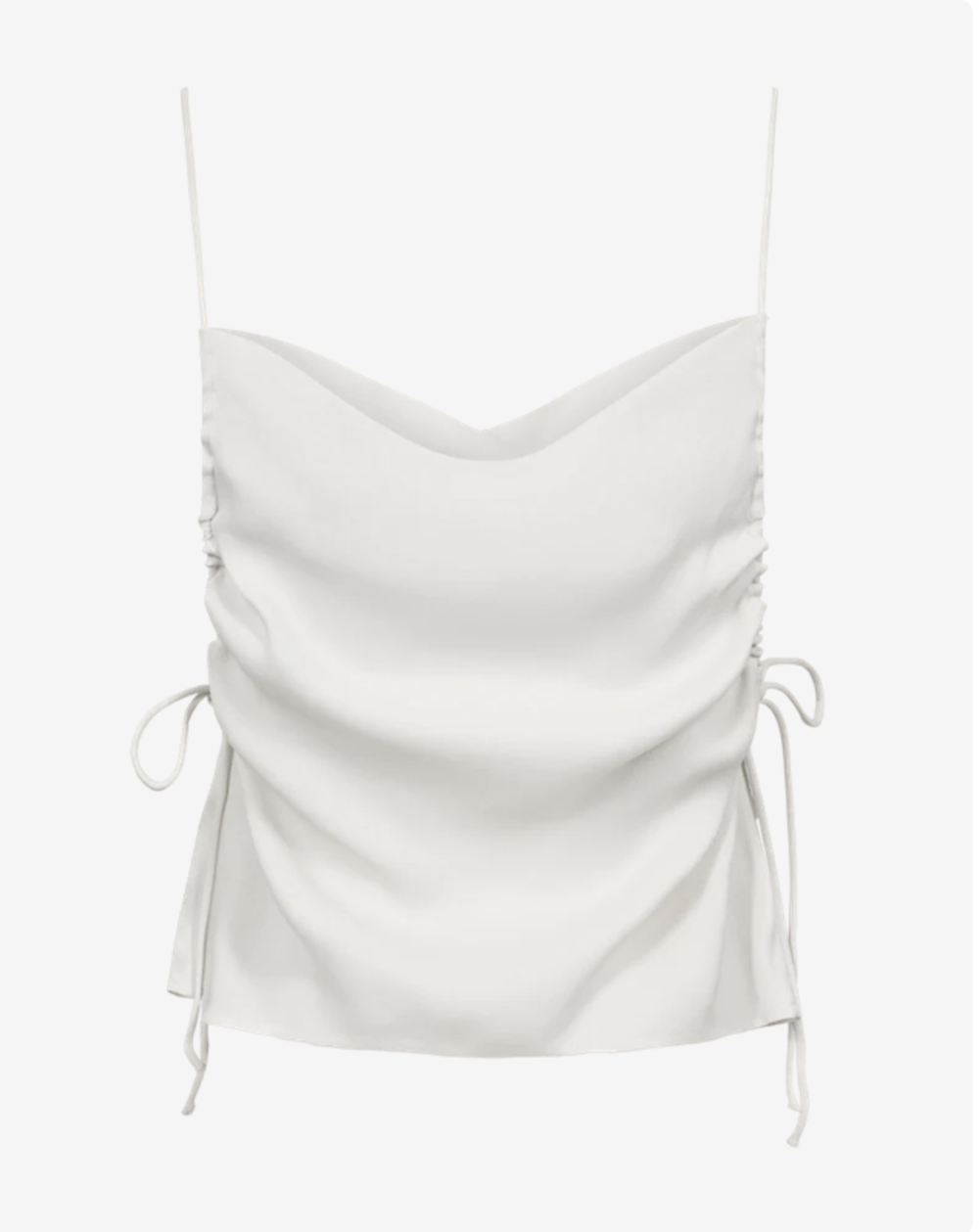 CMVISHA-TOP is a top in a premium material with narrow shoulder straps as well as open sides with adjustable drawstring that creates a refined draped effect.