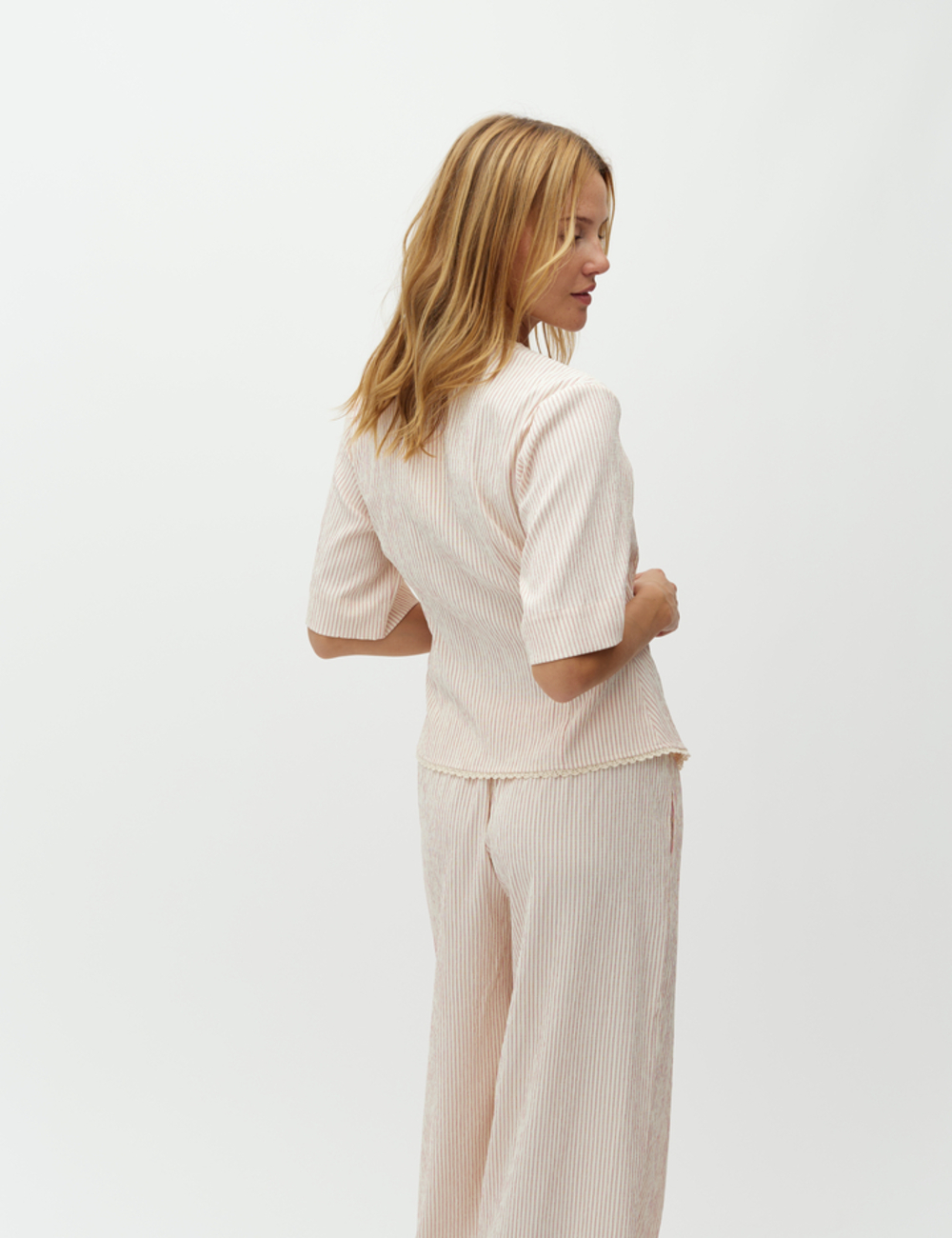 Cute wrap blouse with stripes. Pair with Leonella pants.