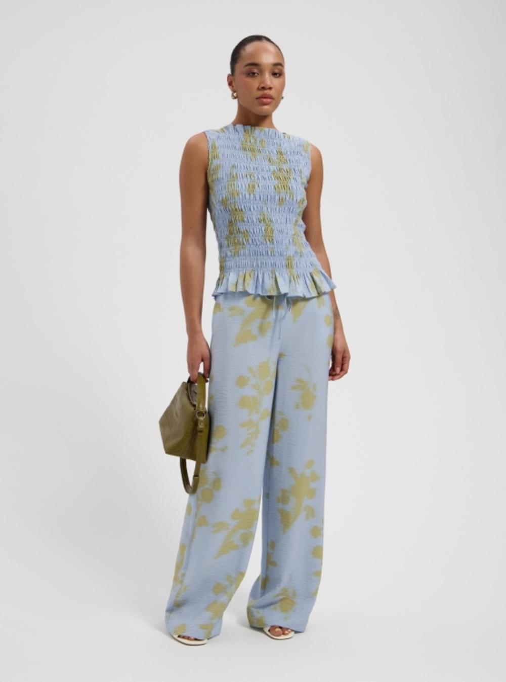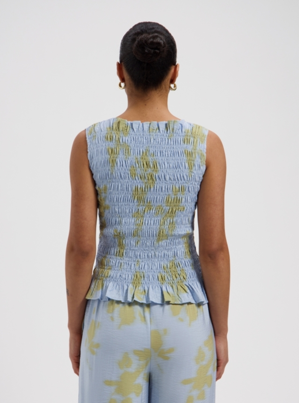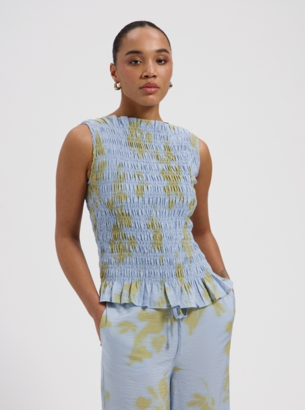 Crinkle sleeveless top in a summer print.