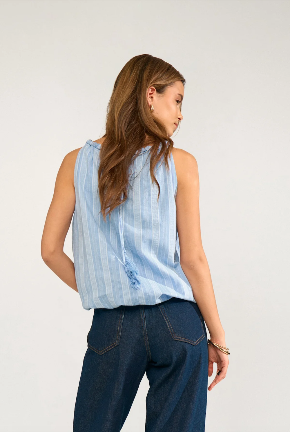 Cute sleeveless striped top.