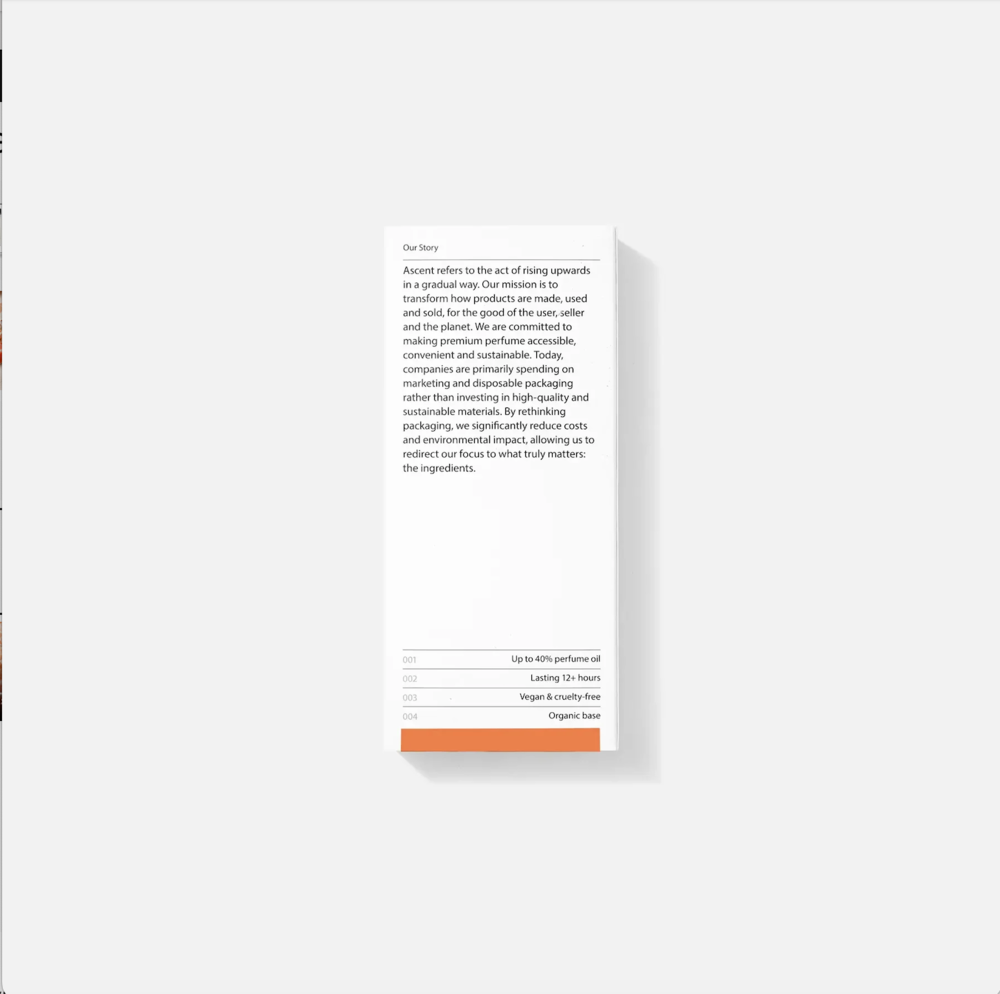 Ascent Orange parfumextract is een verkwikkende combinatie van citrus- en houttonen. De hoogwaardige samenstelling bevat 35% parfumolie en blijft meer dan 12 uur aanwezig. Deze geur is bij uitstek geschikt voor de lente en zomer, maar is veelzijdig genoeg om het hele jaar door te dragen. Het parfum is vegan, dierproefvrij en gemaakt met een biologische basis. Al onze geuren zijn gendervrij – ontworpen om door iedereen gedragen en geliefd te worden.